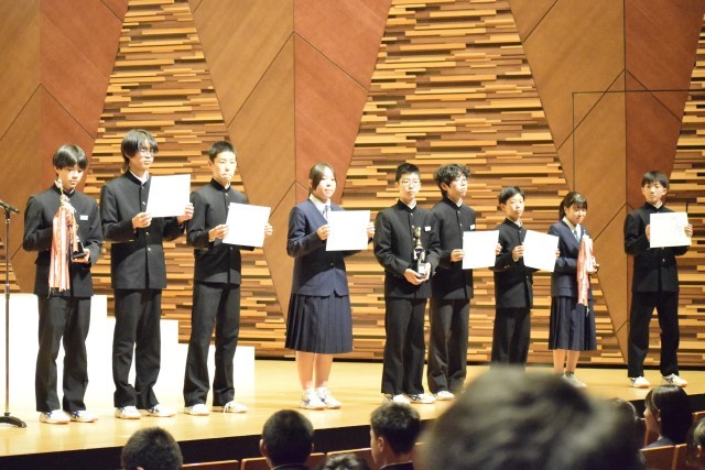 10月16日(木)合唱コンクール3年生、表彰の様子です。