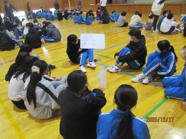 生徒会長の趣旨説明の後、「いじり」についてみんなで考えました。