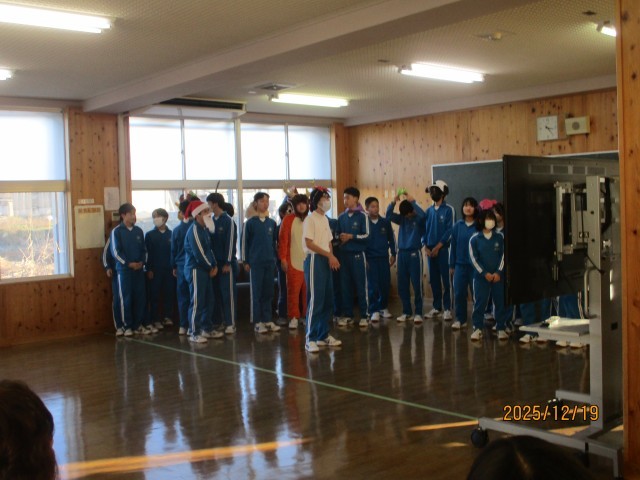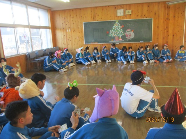 6限まで授業を行いました。6限に学年委員会の取組として、クリスマスパーティーを行いました。