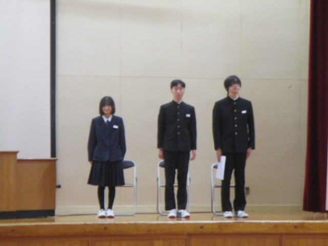 代表生徒3名から、2学期の振り返りとこれからの決意を発表してもらいました。