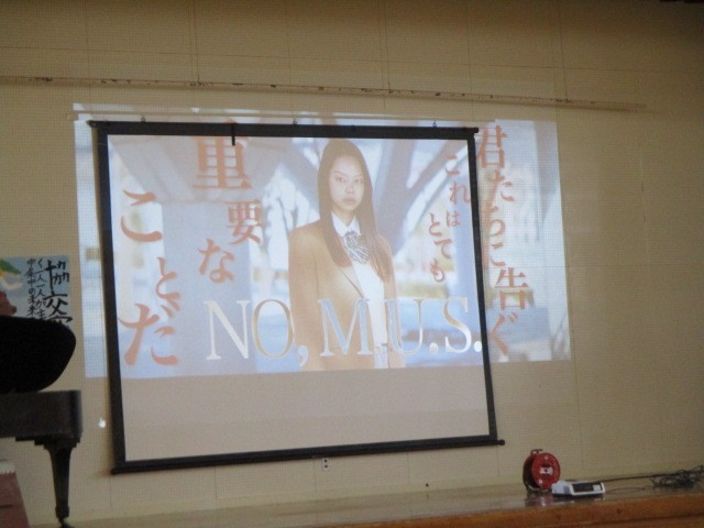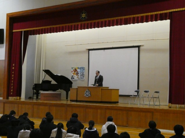 校長講話の後、生徒指導主事から冬休みの過ごし方とSNSについての指導をしました。
