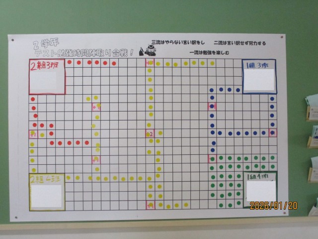 各学年で、テストに向けて、家庭学習の充実のための取組をしています。