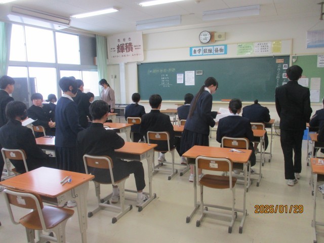 1月29日(木)第3学期定期テスト