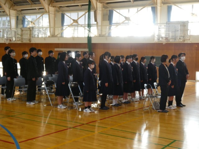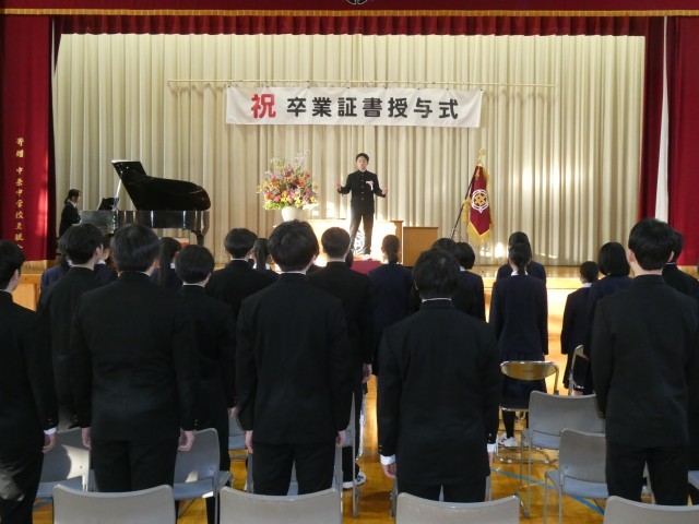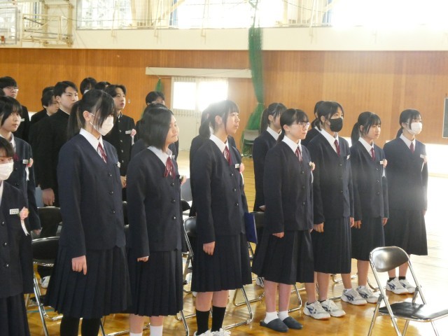 お祝いと校歌、卒業記念合唱を一緒に歌いました。