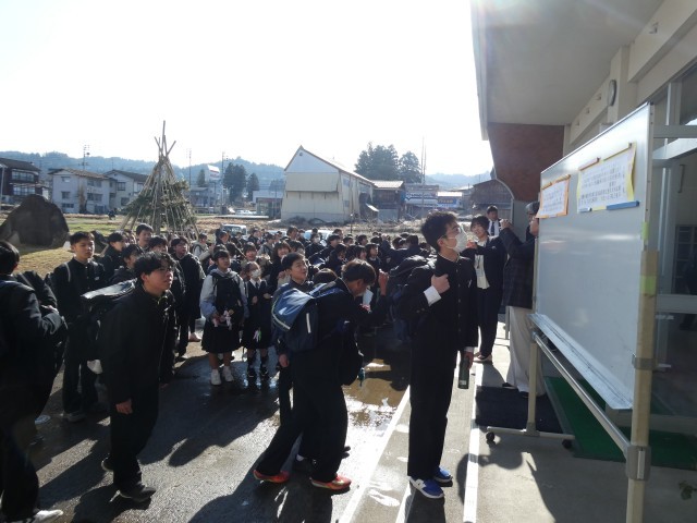 朝から元気よく登校しました。玄関での新クラスの発表を見て、新たなクラスでの生活が始まります。