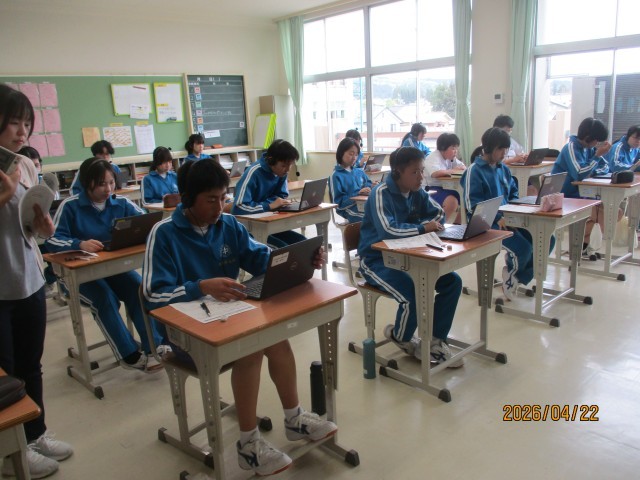 生徒の学校生活や授業の様子を答える「生徒質問紙」に答えました。