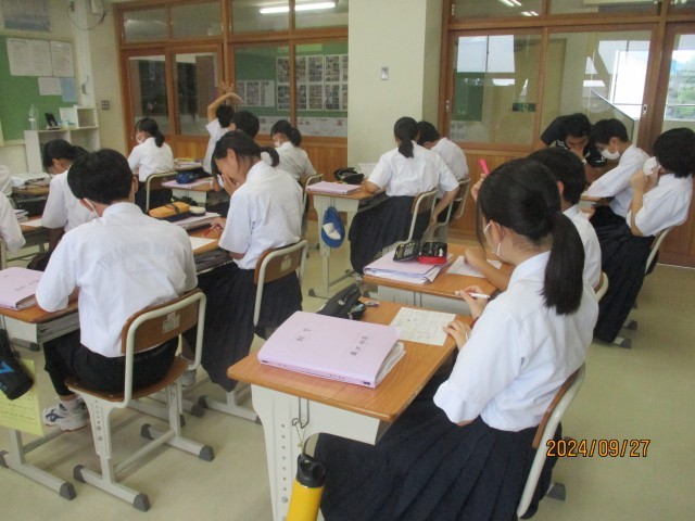 9月27日(金)2年生が数学で、平行線と対頂角、同位角、錯角の学習をしていました。