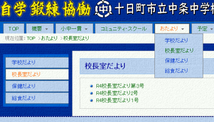 メニューバーの「おたより」→「校長室だより」から閲覧することができます。