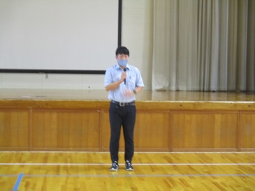 今日は中条小学校の先生からお越しいただきました。学年朝会でご挨拶をいただきました。今日は、授業の補助だけではなく、実際に1年1組で社会の授業を行っていただきます。中条中学校からは中条小学校に英語の先生が体験させていただいています。お互いの校種について理解を深め合うよい機会になっています。小中が連携して小中一貫教育を推進しています。