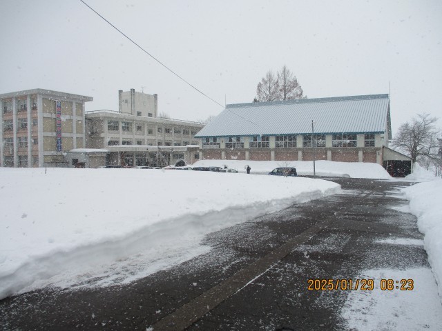 1月29日(水)ここのところ晴天や雨の日が多く、校地内の積雪はかなり減りました。