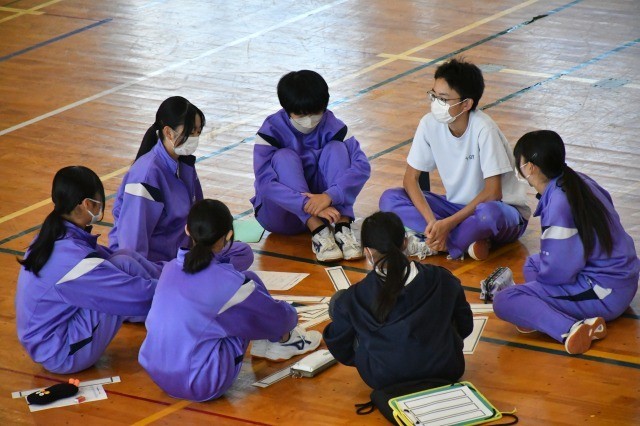俳句の指導者として吉田地区在住の保坂まゆみ様にアドバイスをいただきながら、3校入り混ざった班を編成して、俳句を練り上げ、完成にこぎつけました。
