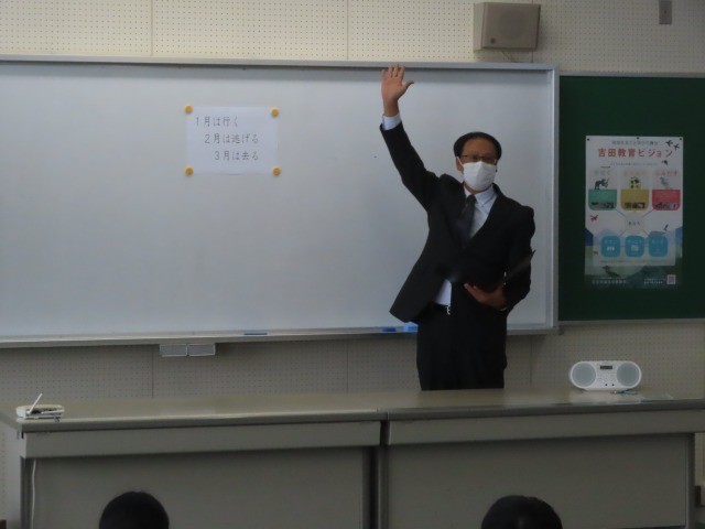 校長先生からは、まとめの3学期であることと期間が短くあっという間に過ぎてしまうため、1日1日を大事にしていくということを生徒に投げかけていただきました。