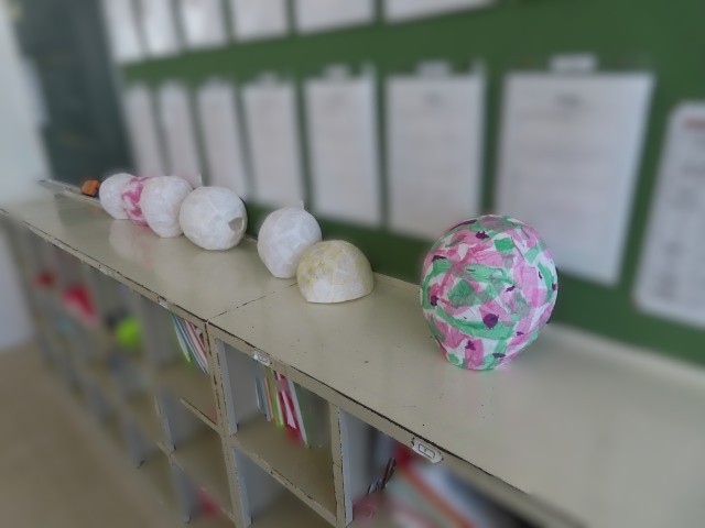 3年生教室には、美術の時間に作成したランプシェードが飾られていました。