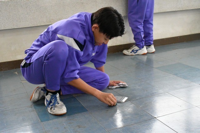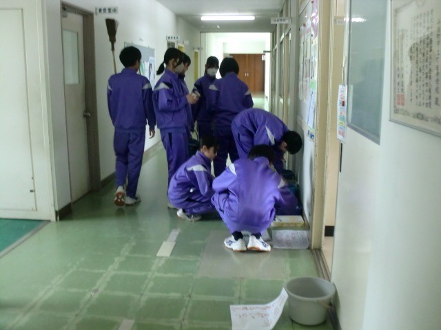 1年間使用した校舎を1,2年生全員で分担をして校舎清掃を行いました。
