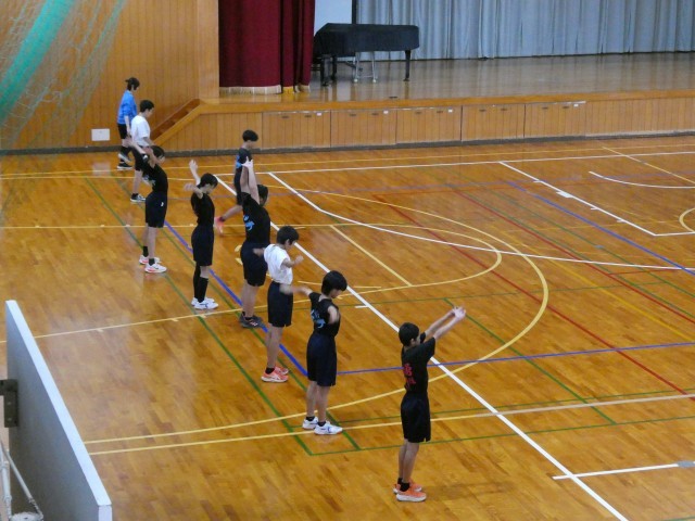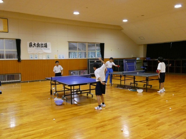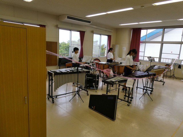 放課後、各運動部は新人大会に向けて体育館や柔剣道場などで熱心に活動していました。また、吹奏楽部は、音楽室でアンサンブルコンテストに向けて各自の練習に取り組んでいました。いよいよ大会が明日に迫った陸上競技部は、雨天だったため体育館で最終調整に励んでいました。