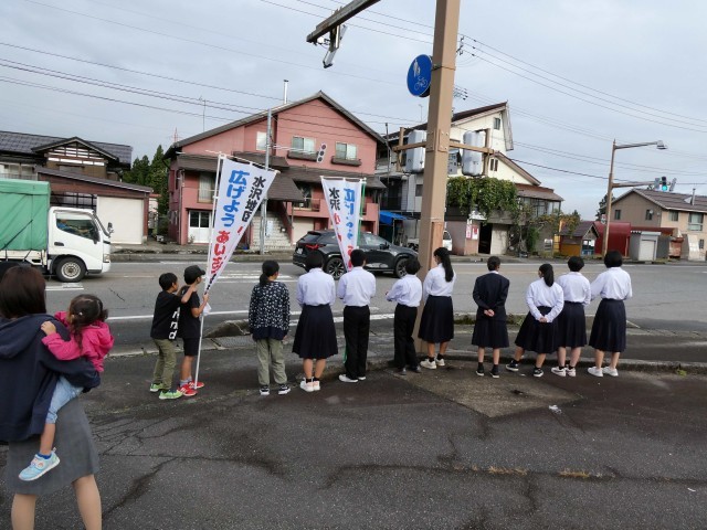 今日・明日の2日間、水沢中学校区小中Pあいさつ交流が行われます。今回は、保護者の皆様からも参加していただき、子どもたちと一緒にあいさつをしました。平成園様前と水沢小玄関前、土市信号前、伊達信号前の4か所で活動しました。参加してくださる保護者の皆様、ありがとうございます。