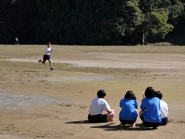 3年生は、体育の時間にマラソン大会に向けてコース練習をしました。コースを走り終えた生徒が、ゴールを目前の生徒に対して「ラスト、ガンバ!」「○○○!ガンバレ!」などと励ます様子に、クラスの仲のよさを感じるとともにほほえましく思いました。