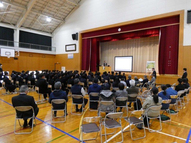 午後、森林環境教育講演会を行いました。この講演会は、地域の森林の現状や働き、大切さを学ぶために今年度初めて開催しました。新潟大学名誉教授の紙谷智彦先生をお招きして、「豪雪地のブナ林を活かす」というテーマで御講演いただきました。学校林管理委員会の皆様、保護者、地域の皆様、関係団体の皆様からお集まりいただきました。ありがとうございました。