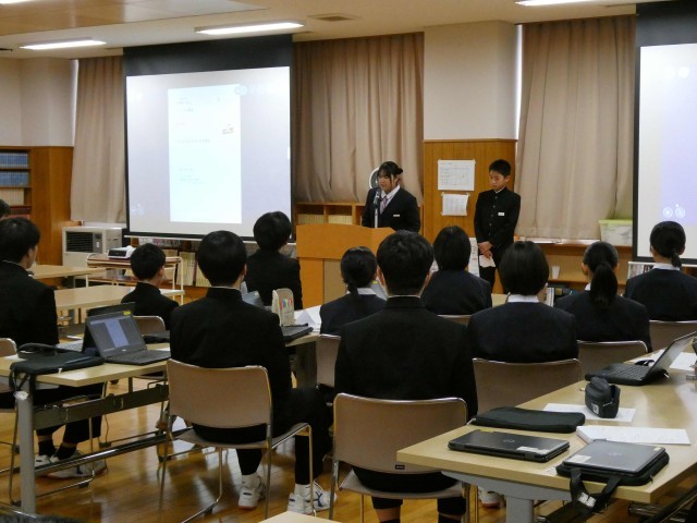 5限にランチルームで全校総合学習を行いました。水沢地区インター推進協議会やCSの皆様、10月に十日町IC周辺の活用方法についての説明をいただいた長岡国道事務所、十日町市都市計画課の皆様に、生徒のアイディアを聞いていただきました。生徒は、縦割り班ごとに各自の考えを出し、班で一つのアイディアに練り上げる活動に取り組みました。水沢地域の将来について、集まった方と考えを深める貴重な時間になりました。