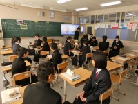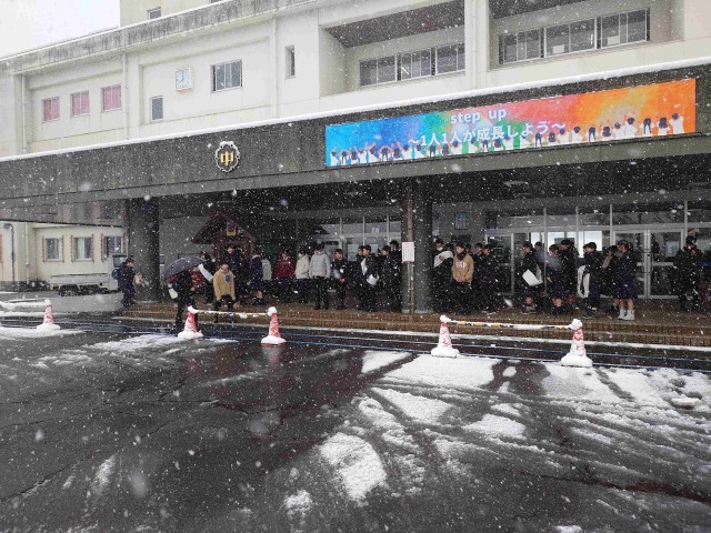 雪が降る朝、玄関で選挙活動がありました。選挙活動がスタートした初日より、明らかに大きな声で立候補者や運動員が呼び掛けをしていました。また、終学活の時に立候補者が教室に出向いて最後の呼び掛けをしました。いよいよ、来週月曜日が、立会演説会と投開票です。