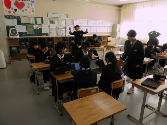 2年生は、総合的な学習の時間に修学旅行の調べ学習をしました。修学旅行2日目の班別自主研修で訪れたい場所について、タブレットを使って調べました。思い出に残る旅行にするために、じっくり考えてほしいです。