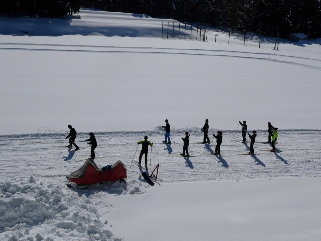 2年生は、体育でクロスカントリースキーをしました。晴天の中、元気に体を動かす様子が見られました。雪国ならではの光景ですが、今日は立春なので、もうこれ以上雪が降らないことを願いたいです。