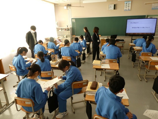 2年生は、社会の時間に戸籍について学びました。市役所市民生活課の職員の方を講師として、住所と本籍の違いや戸籍についての様々なことを学ぶことができました。生徒は、大人でもなかなか分からないことについて、知ることができました。