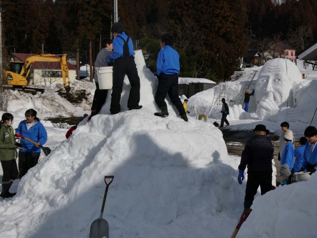 1年生は、午後から雪像作りをしました。今週末に行われる十日町雪まつり、水沢駅の「水沢雪まつり広場」にバスで移動して、自分たちで考えた雪像を作ります。今日は、積み上げられた雪を削り、おおまかな形を作る作業に取り組み、明日完成させます。どんな雪像になるかは、是非、見に行って確かめてください。
