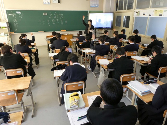 1年生は、国語の時間に文法を学習しました。名詞に関する問題を各自で解き、全体で確認していました。「全問正解した人?」教科担任の問いにたくさん手が挙がっていました。しっかり復習をしてほしいです。