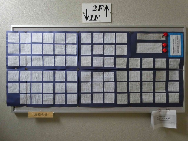今年度も昨年度に引き続き、国語科が、西階段の掲示板に水中生の新聞投稿作品を掲示しています。水中生は、新潟日報「きらきらキラリ」などの記事を国語科の課題として書いています。掲載作品は昨年度を上回る作品が新聞掲載されており、既に掲示板からはみ出るほどになりました。