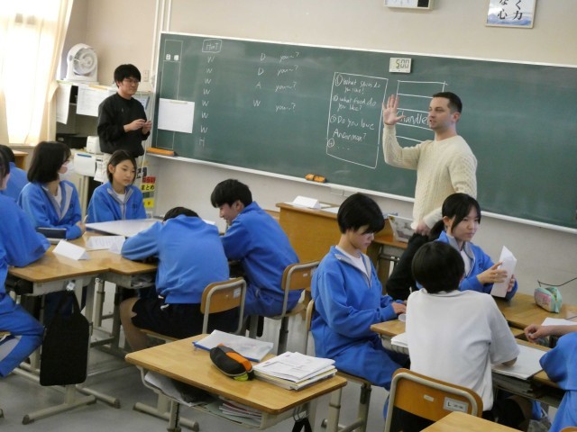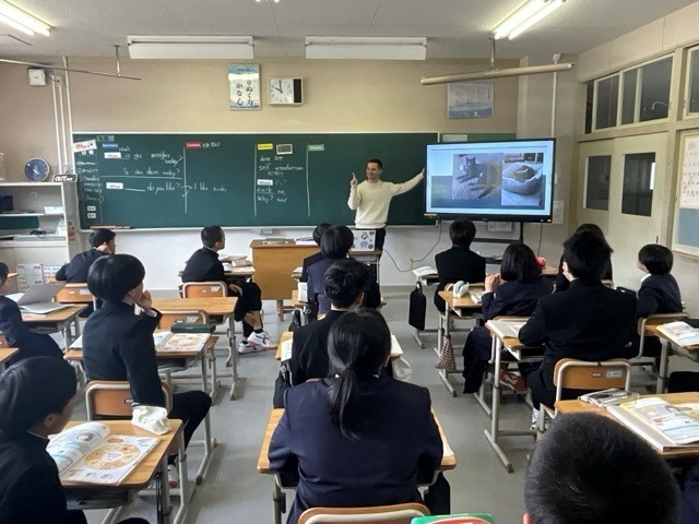 今日は、新しいALTの先生が全学年の英語で授業を行いました。1年生は、ALTの先生の自己紹介を聞いたり、2年生は、ALTの先生に英語で質問をしたりしました。また、自分の名前をローマ字で書いて、ネームプレートを作成していました。これから楽しく英語を学習してほしいです。