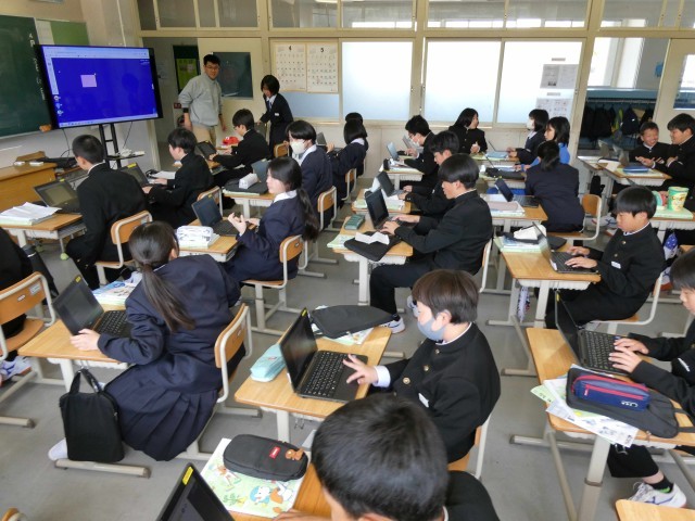 1年生は、技術の時間にタブレットを使って好きなもの紹介を作成しました。タイピング練習をいくつか行った後で、好きなスポーツや食べ物などをロイロノートで作成しました。これからどんどん練習してタイピングが上達してほしいです。