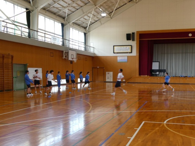 3年生は、体育の時間にシャトルランリレーをしました。シャトルランのテンポに合わせ、男女分かれてリレー形式で走りました。男子の中には、一人で何度も往復する生徒もいて頑張る姿が見られました。