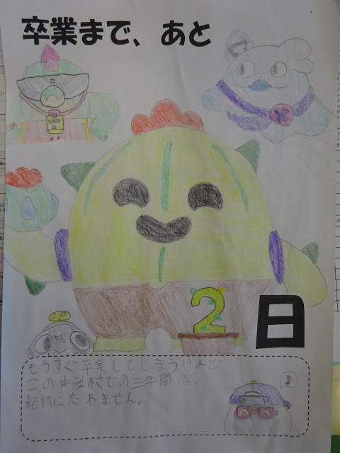 今日のメッセージは「もうすぐ卒業してしまうけれど、この中学校での三年間は、絶対に忘れません」。