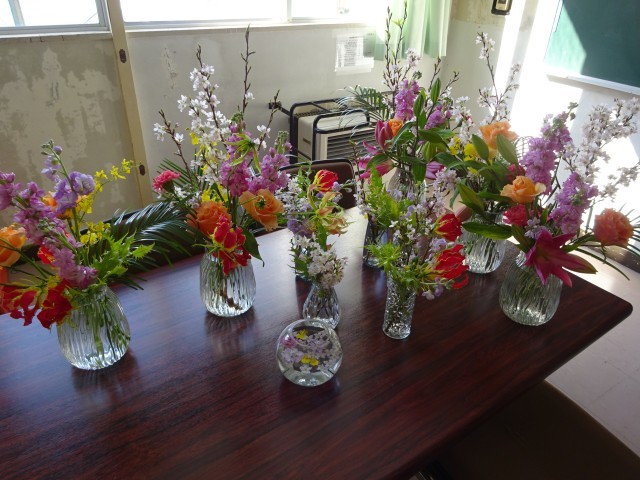 活け替えた花は1・2年生の教室において、卒業の思い出の縁(よすが)にしています。