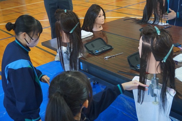 15日(水)、十日町商工会議所青年部の皆様のご協力により、重機操作、床屋、石彫り、寿司づくり、水道管の接続、車の整備、建築体験のブースを設けていただきました。生徒たちは実際の作業を体験する中で、働くことの責任ややりがいを実感するとともに、自分の住む地域で働く人々の仕事ぶりや地域への貢献に気づくことができました。地域の方々の支えによって生活が成り立っていることを肌で感じることができたとともに将来を考える貴重な学びの場となりました。