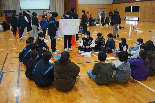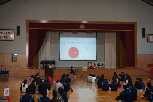 20日(木)小学5・6年生と中学生でいじめ見逃しゼロスクール集会を行いました。アイスブレイクを行った後に、第1回いじめ見逃しゼロスクール集会の取組を行った後のアンケートの分析を生徒会が発表し、中学生の劇を見てグループで話合いを行いました。