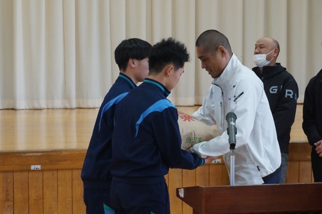 26日(水)に釜川大地育みの会の皆様から、田沢小学校と中里中学校に丹精込めて作られた新米中里産コシヒカリ600kgを寄贈していただきました。