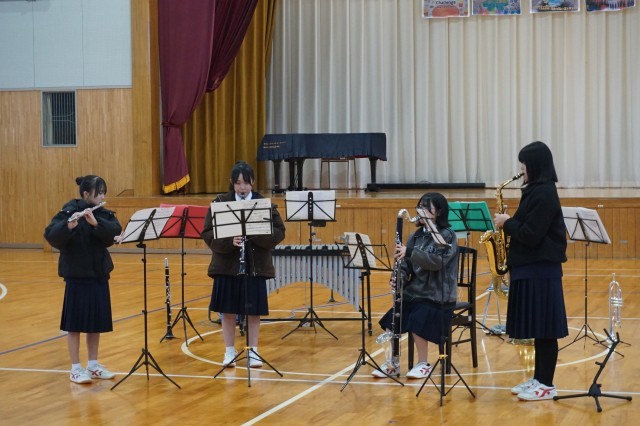 吹奏楽部は、6日(土)に長岡市立劇場で行われた県アンサンブルコンテストに管楽打楽器5重奏と木管4重奏で出場しました。それぞれが今までの練習の成果を発揮しました。結果は銅賞でしたが、当日の演奏は大変素晴らしいものでした。来年の夏のコンクールに向けて今回の取組を活かしてほしいと願っています。