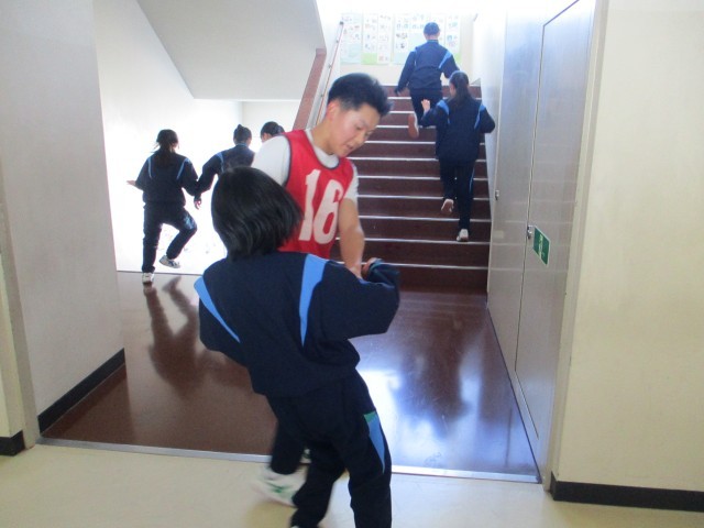 18日(水)の5限に、生徒会本部主催の全校レクを行いました。今年度3回目の全校レクは、校舎全体を使った「逃走中」を行いました。この日のために、何日もかけて本部役員が準備をしてきました。校舎に生徒の歓声が響いていました。