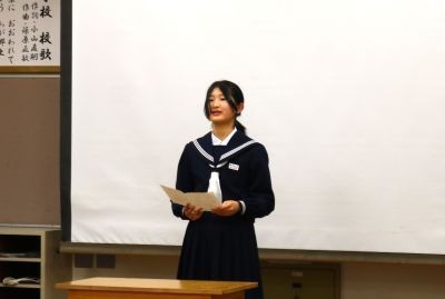 3学期始業式を行いました。代表生徒はこれまでの自分の課題を的確にとらえ、新年からどのように行動したいかを堂々と発表しました。