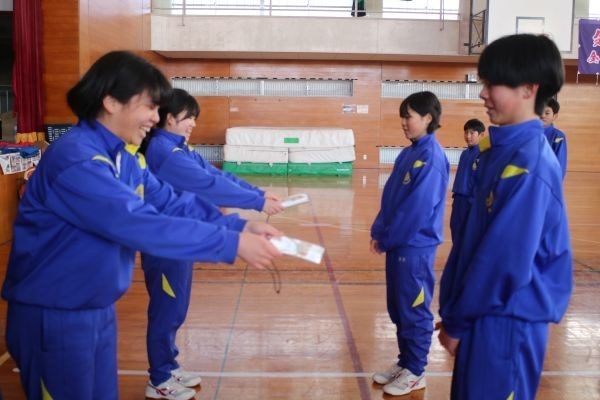 ゲーム後、1・2年生にメッセージカードが贈られ、3年が企画・実行した≪卒業プロジェクト≫は終了しました。1・2年生に喜んでもらえただけでなく、3年生自身にとっても、仲間と協力しながら取り組んだかけがえのない時間となりました。