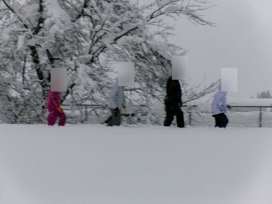 中学部のスノーシューに初めて参加しました。私(校長)は、シューズを履くのもままならず、転べば助けてもらわないと動けない状況でしたが、生徒たちは、新雪の中をたくましく登っていきました。そして、出発地点に戻ると、小学部のスノーアクティビティのために、「コースを固めよう!」と、再び別の新雪の場所に一人一人が飛び込んでいきました。雪に親しみ、雪とともに生きる妻有の子のたくましさを感じるひとときでした。