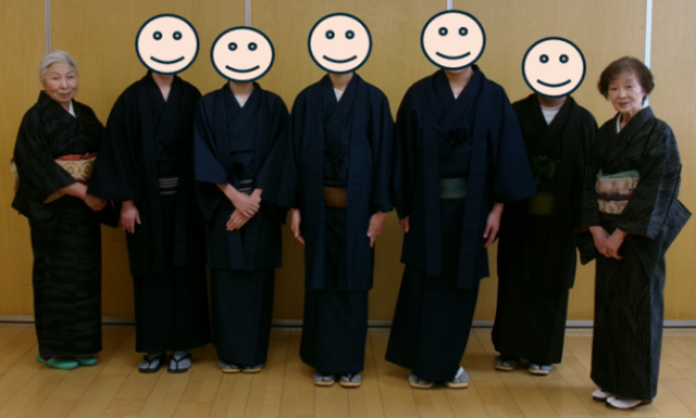 「わかむらさきの会」の方から、この春卒業の中学部3年生に着付けをしていただき、和装体験を行いました。足袋を履くのに悪戦苦闘したり、格好よく着付けるためにタオルをお腹に入れたり、普段なかなかできない体験をさせていただきました。用意してくださった着物の色もとても素敵で、あっという間に粋な5人衆が完成しました。その後の「邦楽の調べに親しむ会」に和装で参加すると、下級生から「かっこいい!」「ぼくも大きくなったら、あんな風になれる?」などの声がたくさん聞かれました。この一年間、学校を引っ張ってきてくれた中学部3年生、下級生の憧れのお手本となっています。