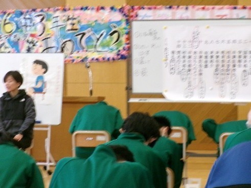 3月6日から、卒業式の全体練習が始まりました。初日は、担当から、卒業式に向けた心構えについて次のような話がありました。