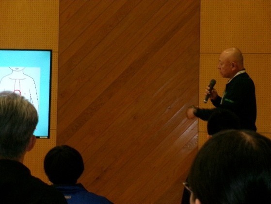 「心臓突然死は年間で7~8万人に起こり、いつ、どこで起こってもおかしくないこと」、「究明処置の実施が1分遅れると救命率が10%下がること」、「誰もが勇気をもって自分ができることをやることが多くの命を救うこと」などを動画や講話から教えていだきました。