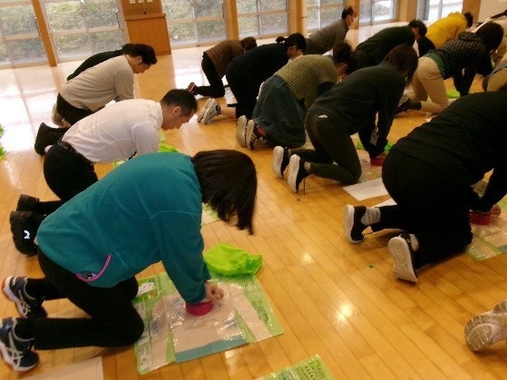 その後、一人一人が「あっぱくん」モデルを使ってシミュレーションをすることで、実際の緊急時のイメージにつながりました。救急法については、年々実践しやすいように更新されています。今回教えていただいたPUSHプロジェクト(胸をPUSH、AEDをPUSH、あなた自身をPUSH)を大切に、子どもたちの安全を守っていきたいと思います。